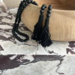 A gorgeous string of boho natural wood beads with tassle Measuring approximately 150cm long works perfectly around the neck of a vase or draped in a bowl for added textures, or draped in a bowl as pictured