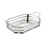 The epitome of modern style, this rectangular octagon tray shines with the simplicity of stainless steel. Mirrored glass reflects a sense of lightness and clean, crisp lines. Balanced on a cocktail table or sideboard, this tray elevates with sophistication.
