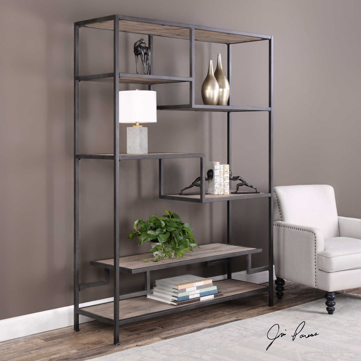 - Materials: reclaimed pine framed in iron with an aged black finish