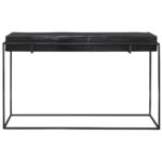 - Materials: thick cast aluminum top with natural texturing finished in a plated antique black, resting in a coordinating aged black iron base.