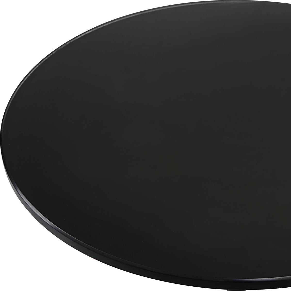 - Materials: brushed brass and satin black iron base with black marble details and a black glass top.