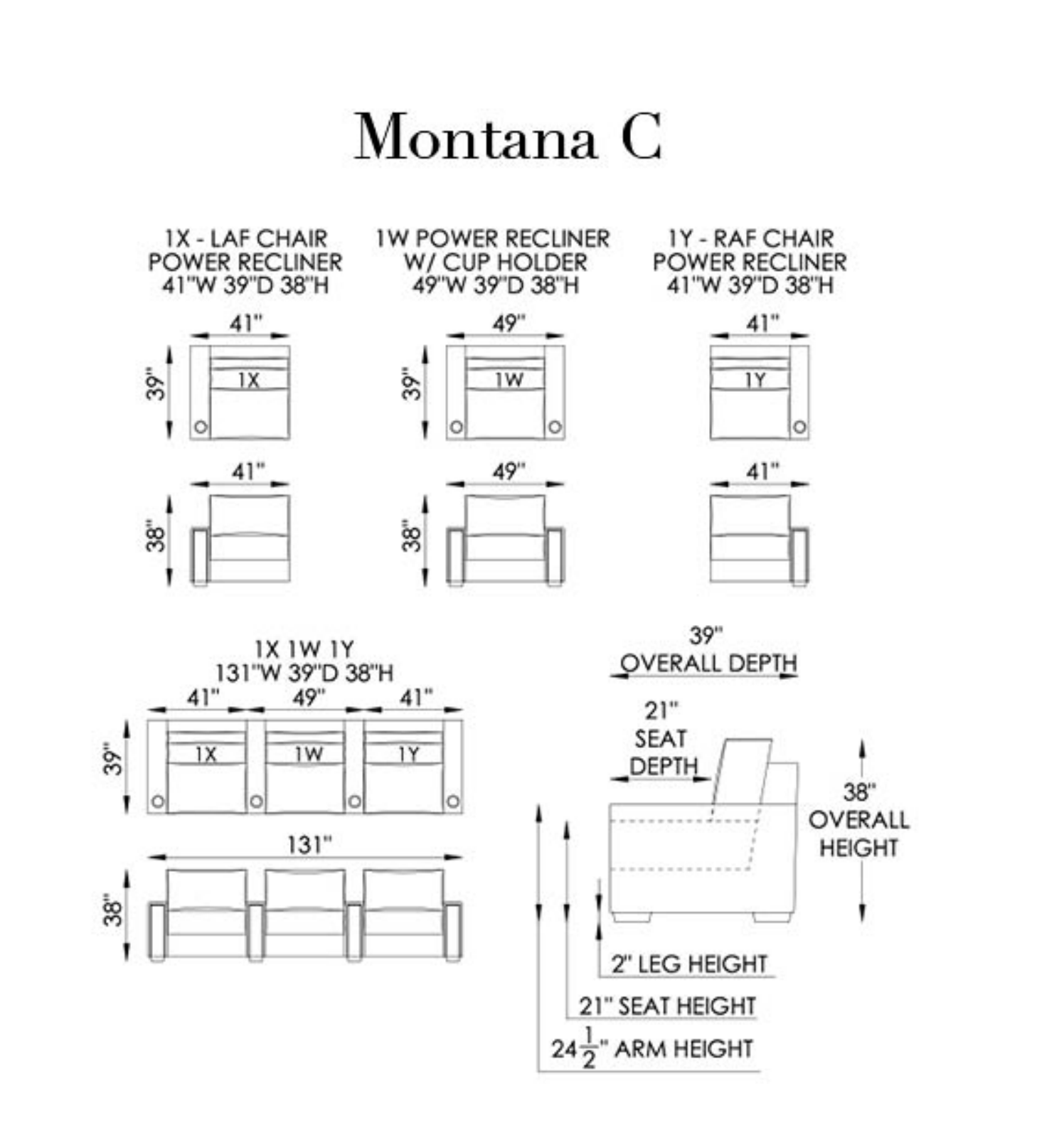 - Seats: Individually pocketed coil springs encased in high-resiliency foam, wrapped in feather/down/polyester blend envelopes that are channeled to prevent bunching.