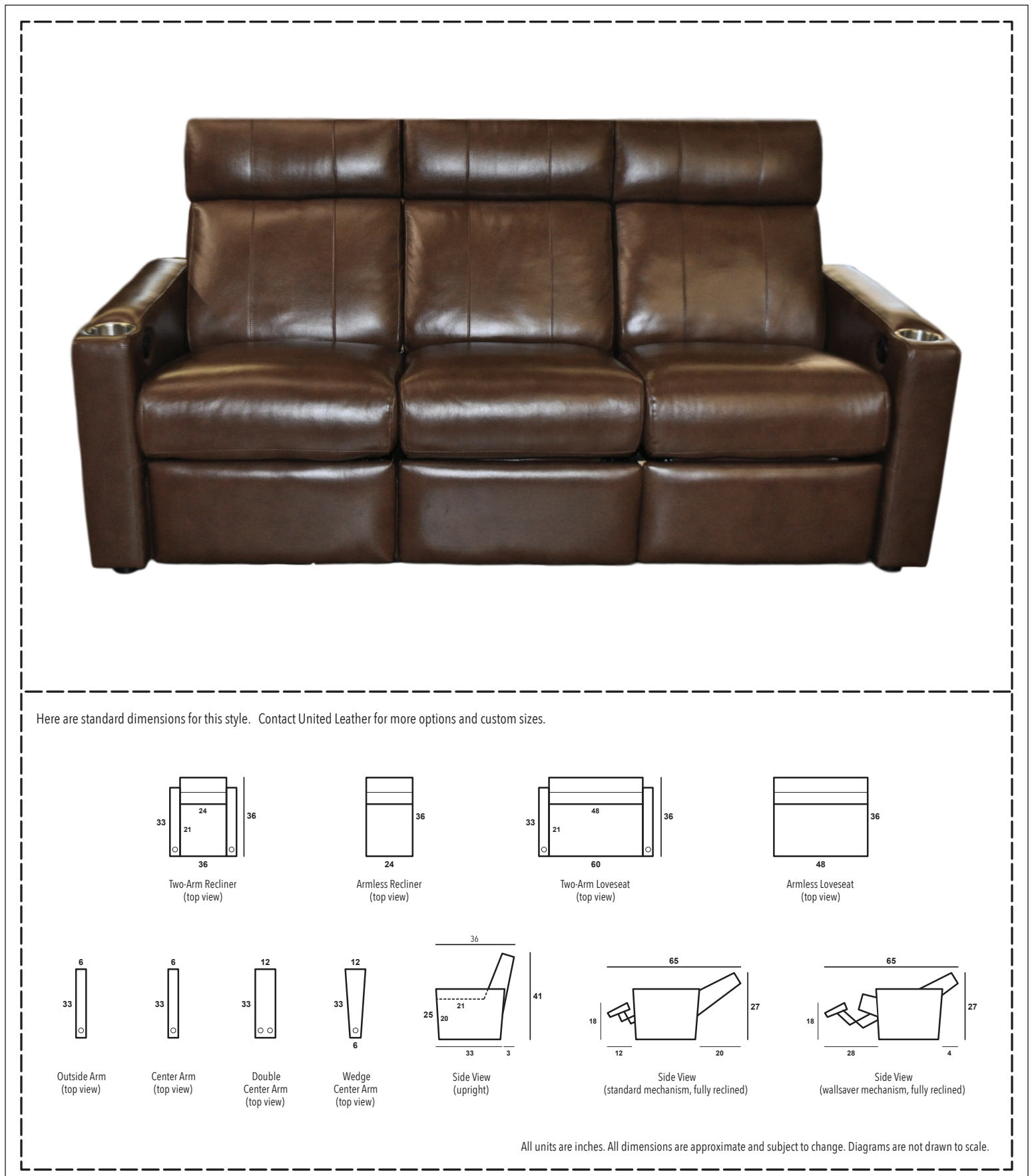 Reclining Sofa with 2 Small Console Arms