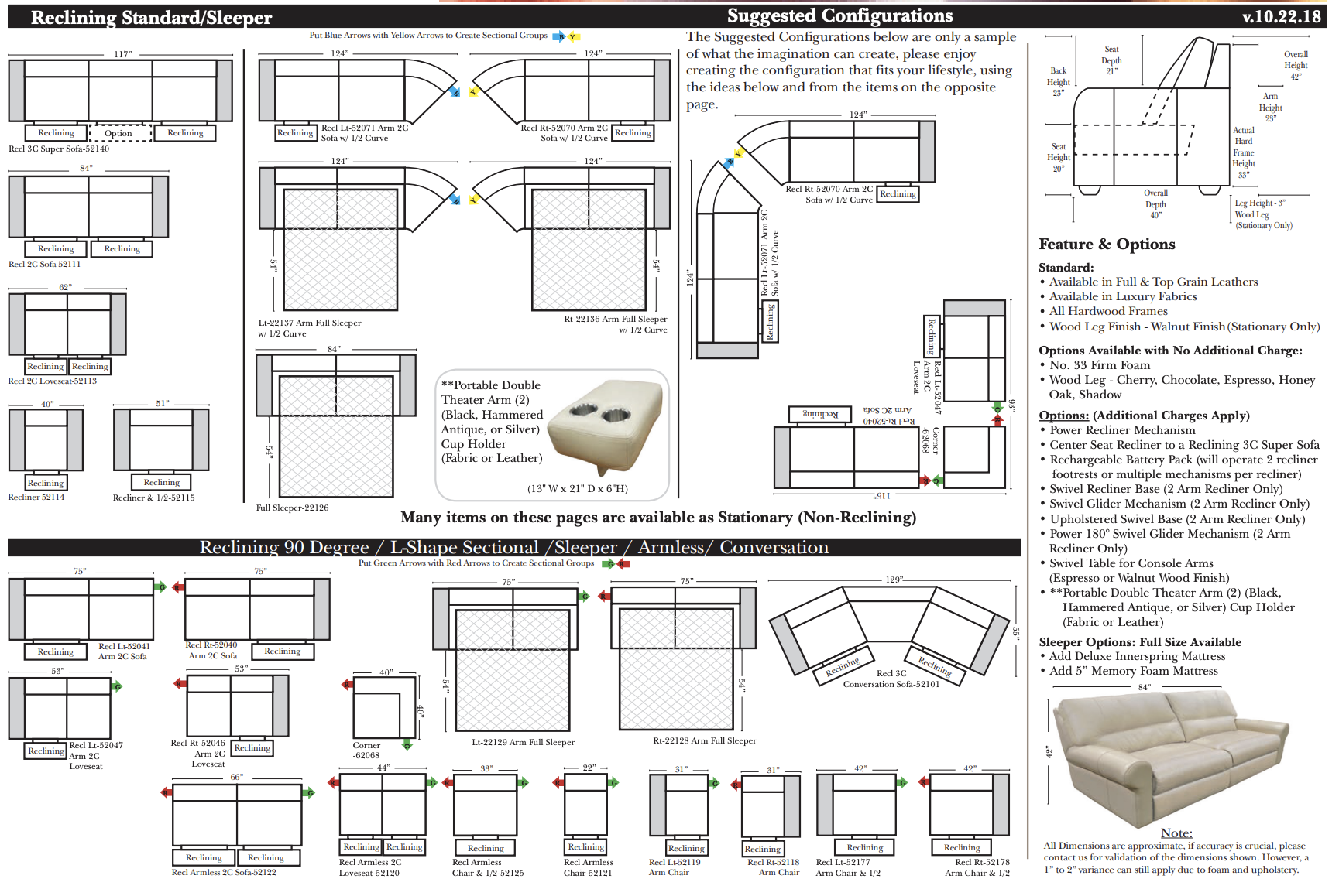 - Leather or Fabric Covers: 100% Top Grain Leather no bonded leathers, split hides or vinyl ever. Over 200 Leathers of 30 types, including designer patterns. Over 100 luxury fabrics options, including performance fabrics two-tone leather options and fabric/leather combinations.