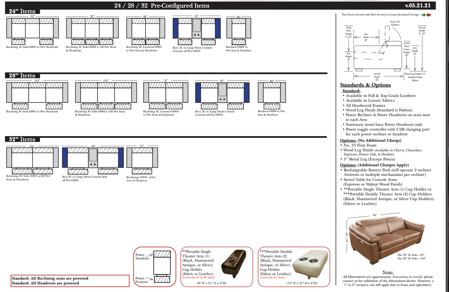 - Leather or Fabric Covers: 100% Top Grain Leather no bonded leathers, split hides or vinyl ever. Over 200 Leathers of 30 types, including designer patterns. Over 100 luxury fabrics options, including performance fabrics two-tone leather options and fabric/leather combinations.