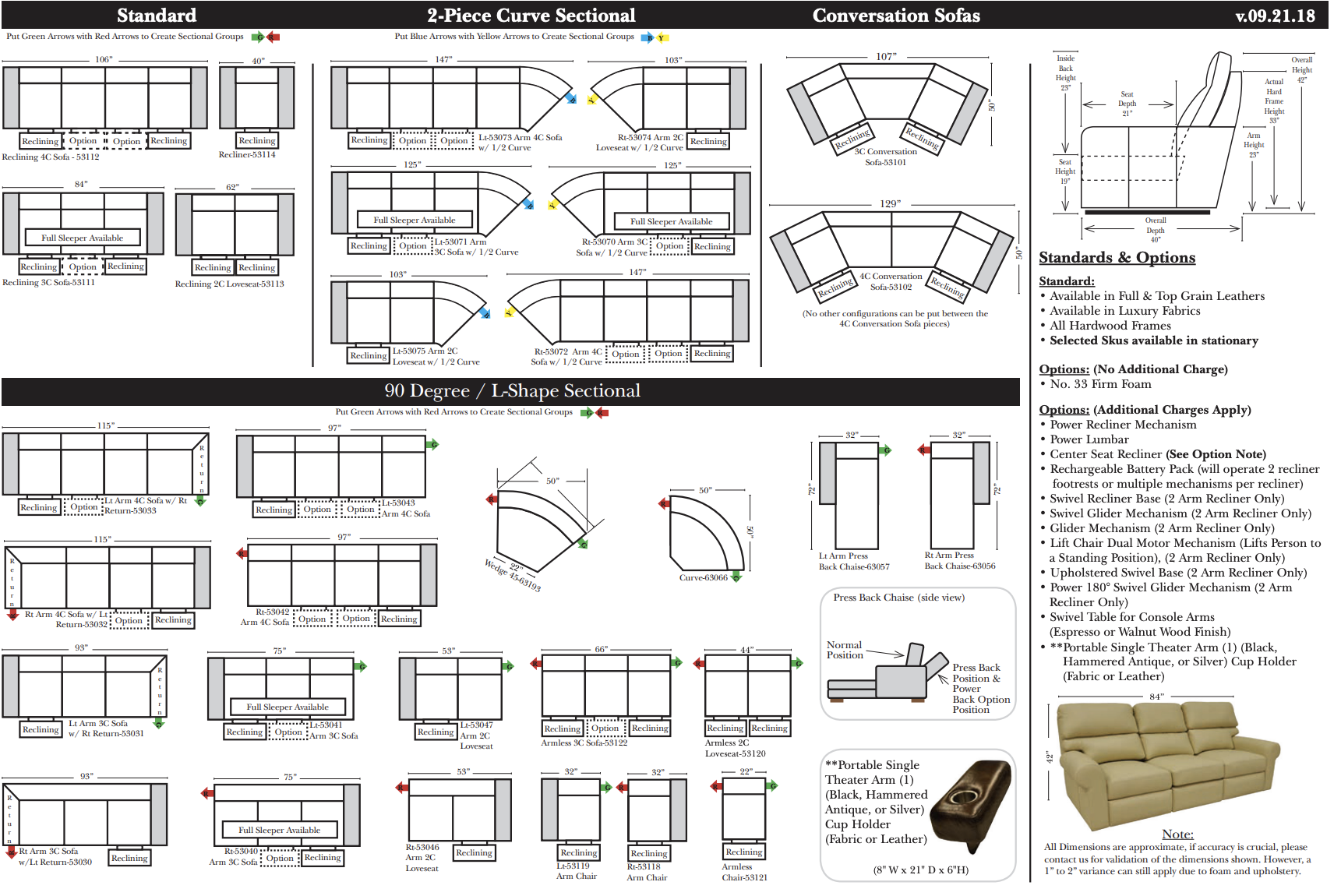 • Leather or Fabric Covers: 100% Top Grain Leather no bonded leathers, split hides or vinyl ever. Over 200 Leathers of 30 types, including designer patterns. Over 100 luxury fabrics options, including performance fabrics two-tone leather options and fabric/leather combinations.