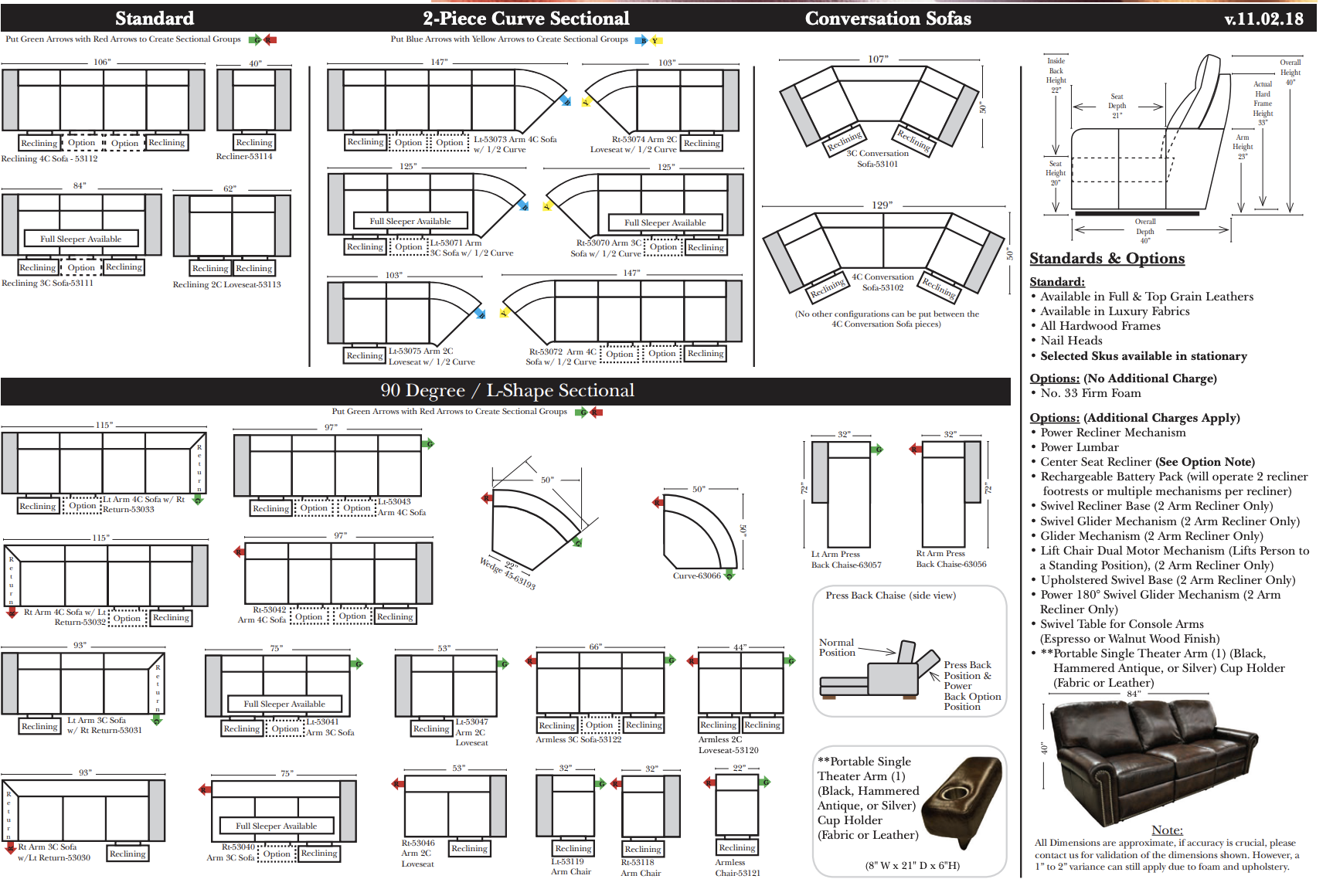 - Leather or Fabric Covers: 100% Top Grain Leather no bonded leathers, split hides or vinyl ever. Over 200 Leathers of 30 types, including designer patterns. Over 100 luxury fabrics options, including performance fabrics two-tone leather options and fabric/leather combinations.