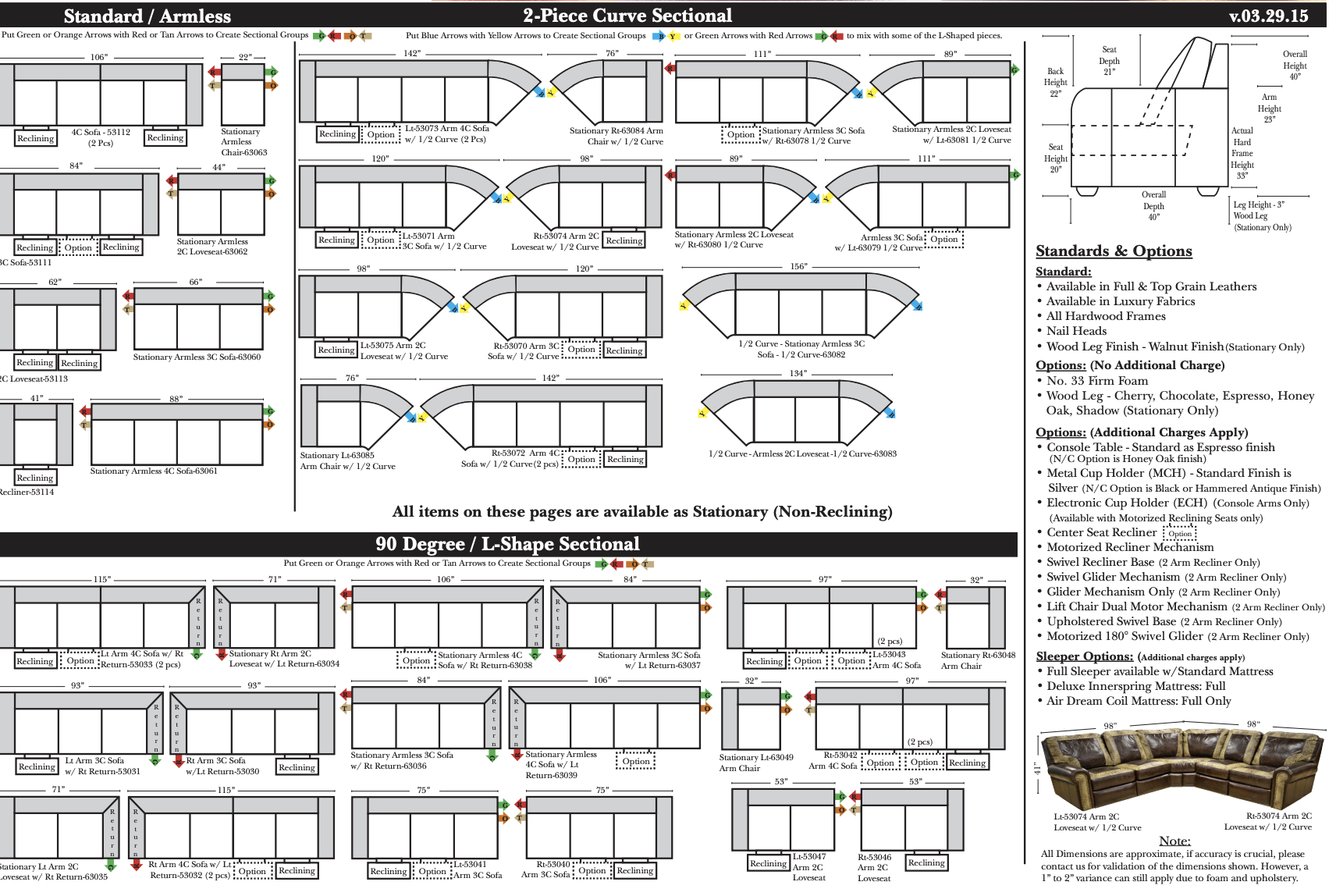 - Leather or Fabric Covers: 100% Top Grain Leather no bonded leathers, split hides or vinyl ever. Over 200 Leathers of 30 types, including designer patterns. Over 100 luxury fabrics options, including performance fabrics two-tone leather options and fabric/leather combinations.