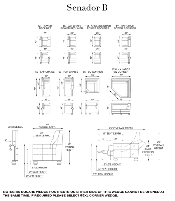 - Seats: Individually pocketed coil springs encased in high-resiliency foam, wrapped in feather/down/polyester blend envelopes that are channeled to prevent bunching.