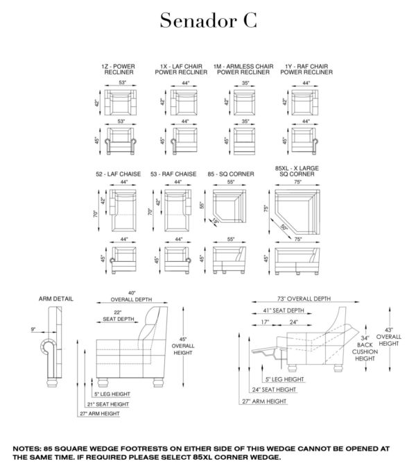 - Frame: Combination of Hardwood/furniture grade laminate frame – corner blocked, glued & stapled