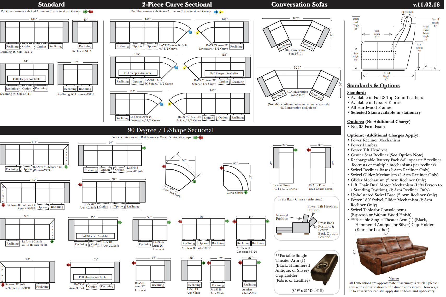 • Leather or Fabric Covers: 100% Top Grain Leather no bonded leathers, split hides or vinyl ever. Over 200 Leathers of 30 types, including designer patterns. Over 100 luxury fabrics options, including performance fabrics two-tone leather options and fabric/leather combinations.