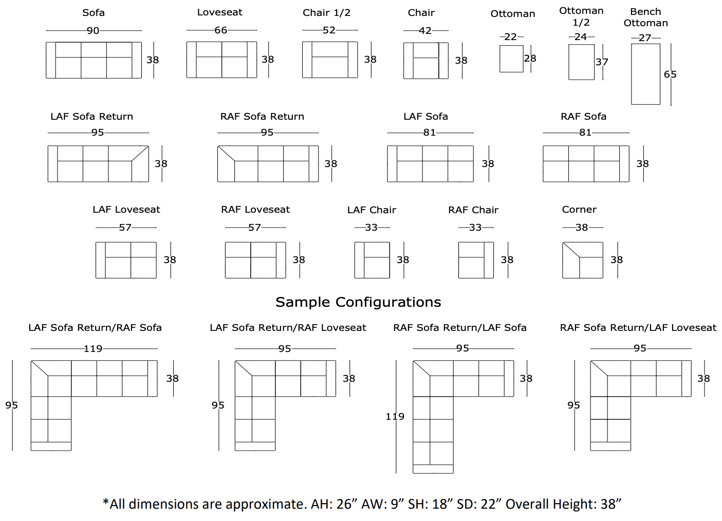 - Seating:: Our 8-way hand tied process is the hallmark of fine upholstery. This process stabalizes the coil springs and causes the entire spring set to work in unison.