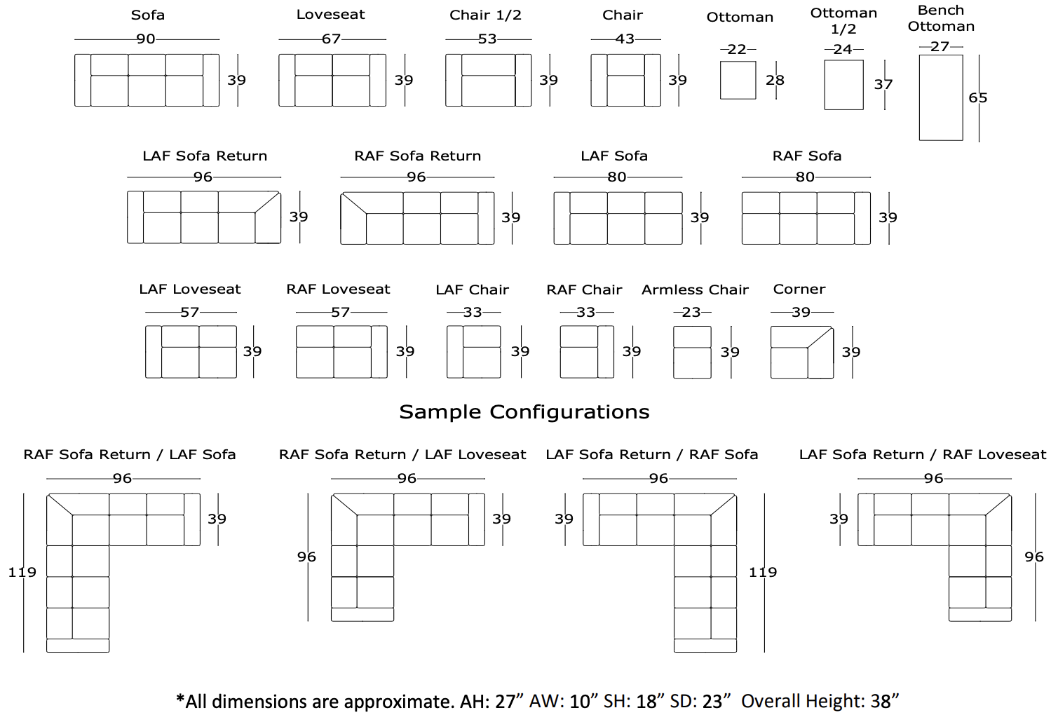 - Seating:: Our 8-way hand tied process is the hallmark of fine upholstery. This process stabalizes the coil springs and causes the entire spring set to work in unison.