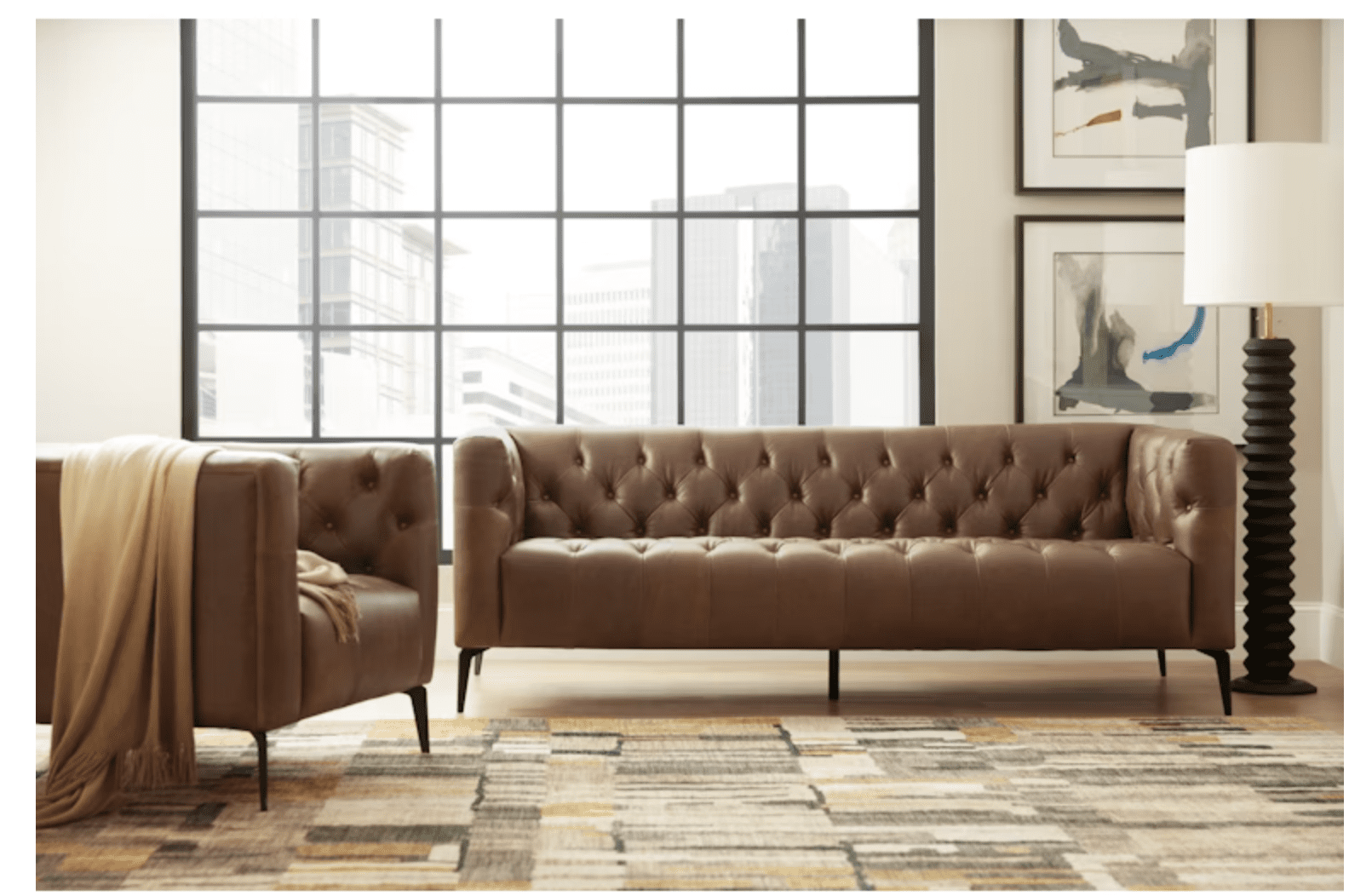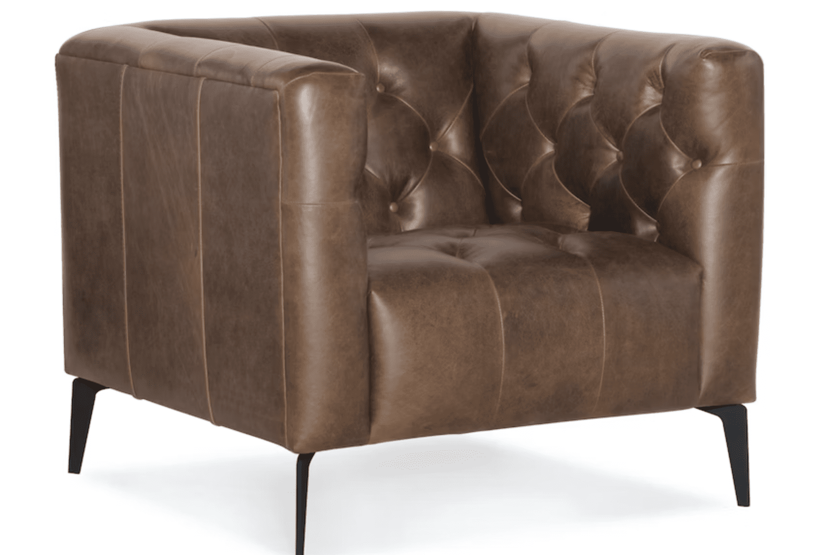 Urban, modern and timeless, the Nicola Leather Stationary Sofa has low slung arms, tufted tailoring and slim metal legs. The upscale Saddlebag Lodge Aniline leather with authentic character is the distinctive cover. Developed by one of America’s premier manufacturers to offer quality furniture at affordable prices. Each piece is meticulously hand-crafted using the most exquisite leathers in the world.