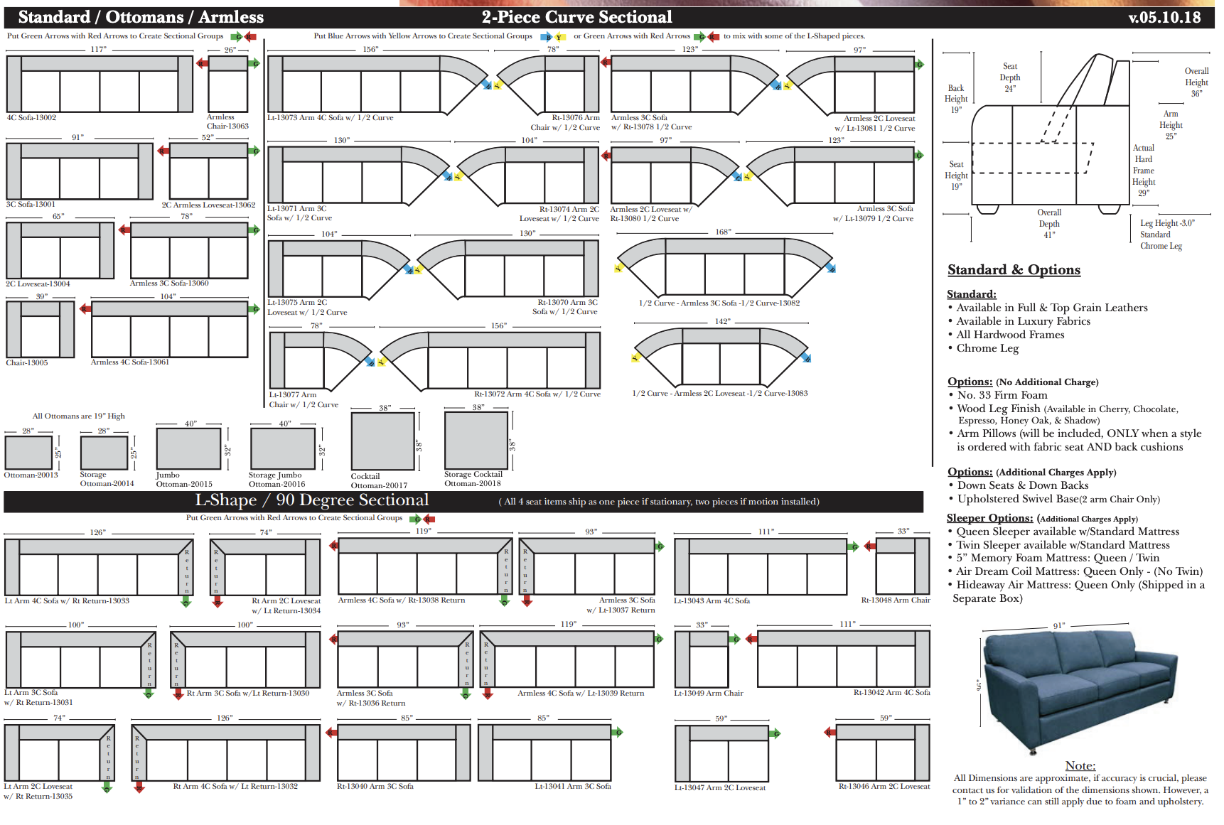 - Leather or Fabric Covers: 100% Top Grain Leather no bonded leathers, split hides or vinyl ever. Over 200 Leathers of 30 types, including designer patterns. Over 100 luxury fabrics options, including performance fabrics two-tone leather options and fabric/leather combinations.