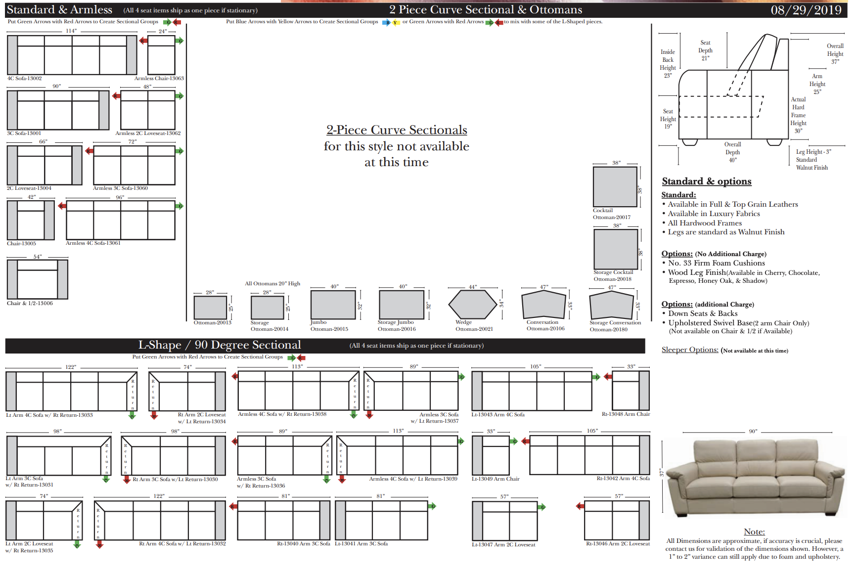 - Leather or Fabric Covers: 100% Top Grain Leather no bonded leathers, split hides or vinyl ever. Over 200 Leathers of 30 types, including designer patterns. Over 100 luxury fabrics options, including performance fabrics two-tone leather options and fabric/leather combinations.