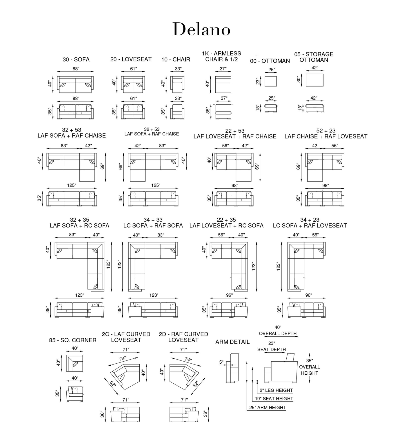 - Seats: Individually pocketed coil springs encased in high-resiliency foam, wrapped in feather/down/polyester blend envelopes that are channeled to prevent bunching.