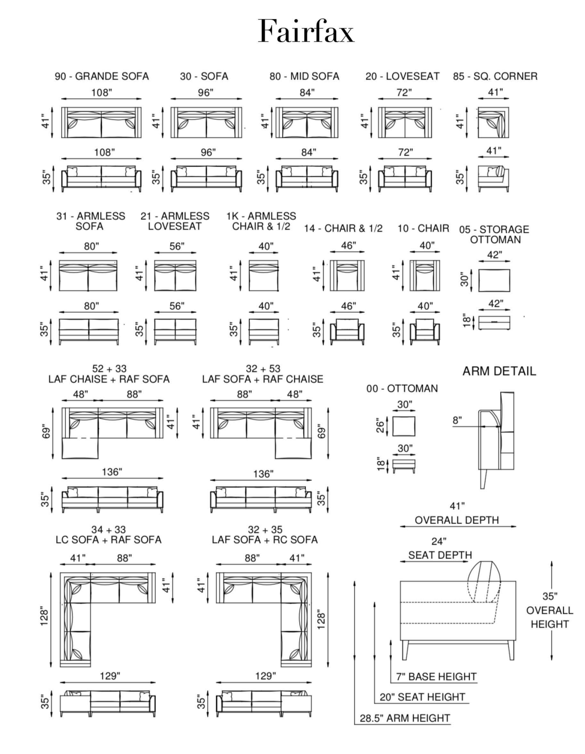 - Seats: Individually pocketed coil springs encased in high-resiliency foam, wrapped in feather/down/polyester blend envelopes that are channeled to prevent bunching.