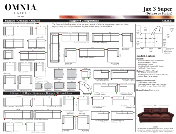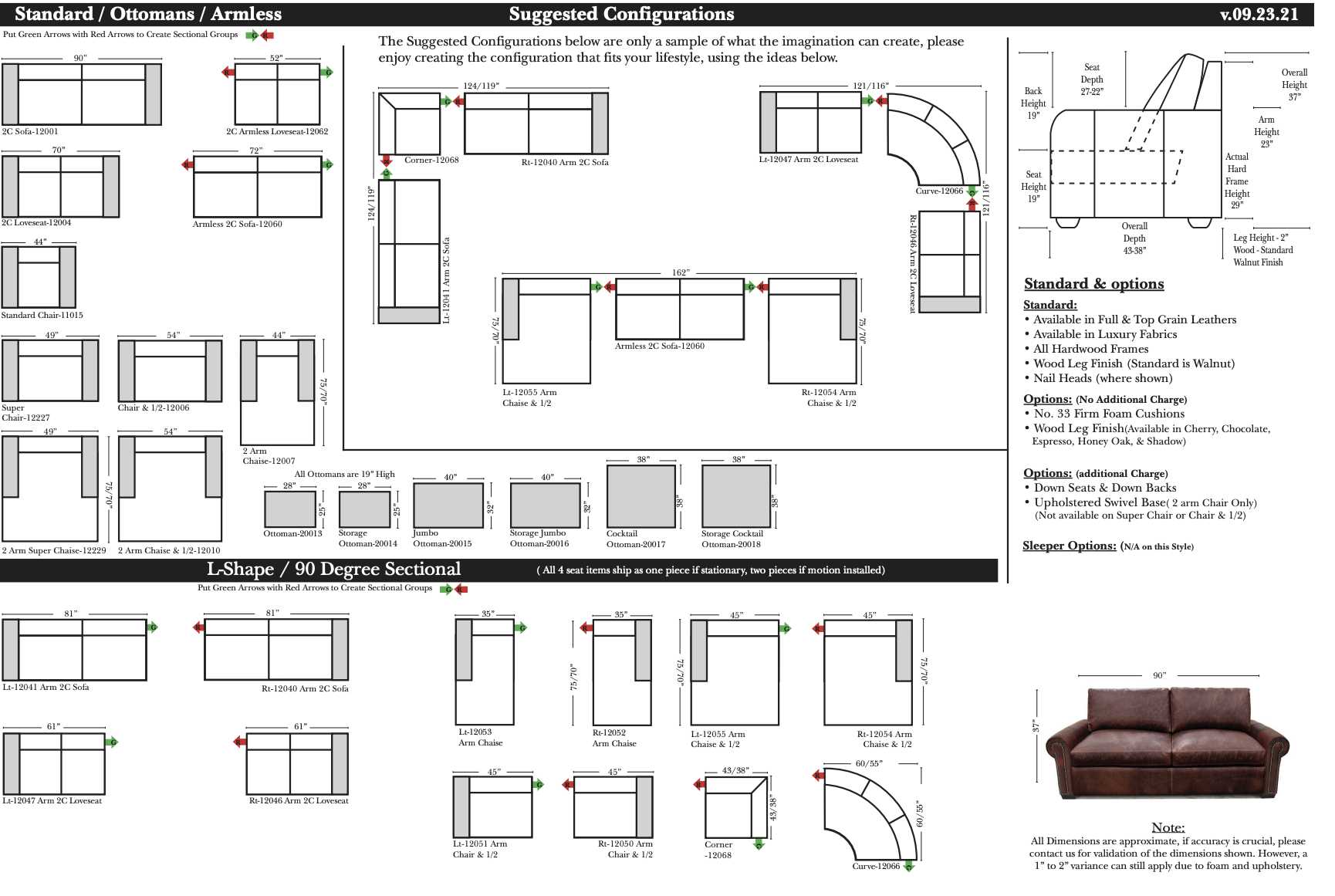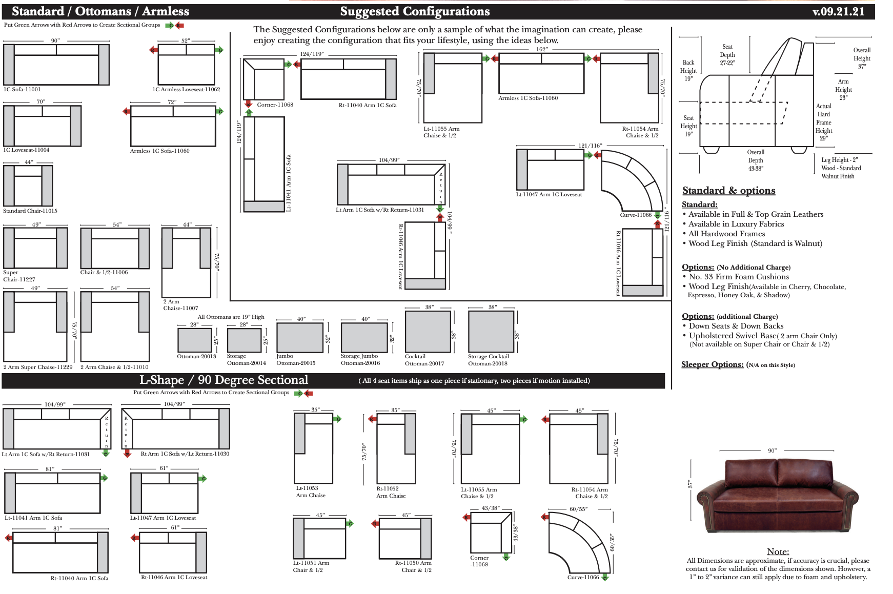 - Leather or Fabric Covers: 100% Top Grain Leather no bonded leathers, split hides or vinyl ever. Over 200 Leathers of 30 types, including designer patterns. Over 100 luxury fabrics options, including performance fabrics two-tone leather options and fabric/leather combinations.