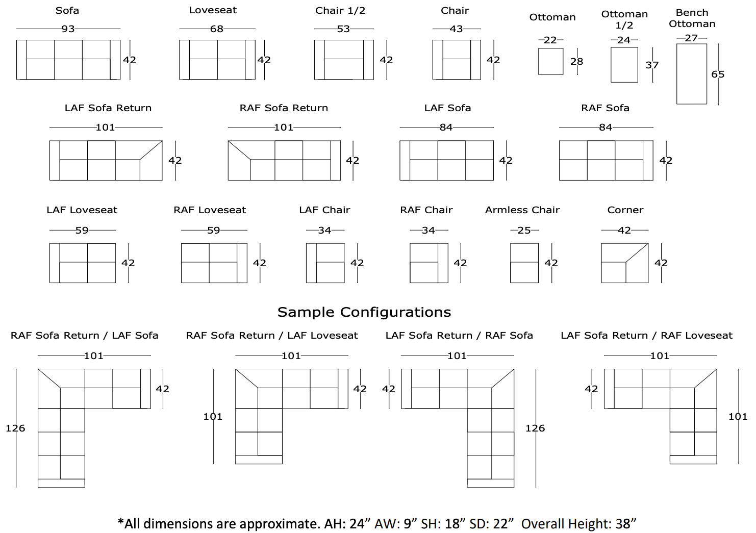 - Seating:: Our 8-way hand tied process is the hallmark of fine upholstery. This process stabalizes the coil springs and causes the entire spring set to work in unison.