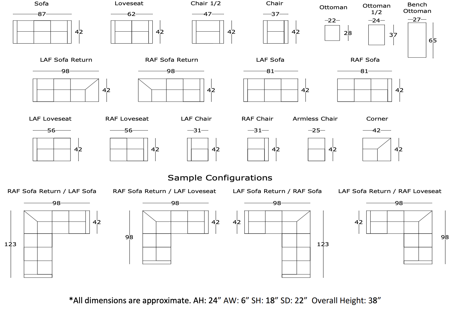 - Seating:: Our 8-way hand tied process is the hallmark of fine upholstery. This process stabalizes the coil springs and causes the entire spring set to work in unison.