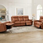 The rich contemporary design of the Sullivan leather collection features sleek lines in the arms, creating a refreshing look that is sure to enhance any living room decor. With buttery soft genuine cowhide leather and a smooth reclining mechanism, the Sullivan collection adds a deep comfort perfect for any living environment with a sophisticated color choice.