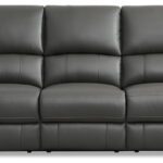 Top-grain leather on seating areas and arms rests. Leather match is used on the sides and back.