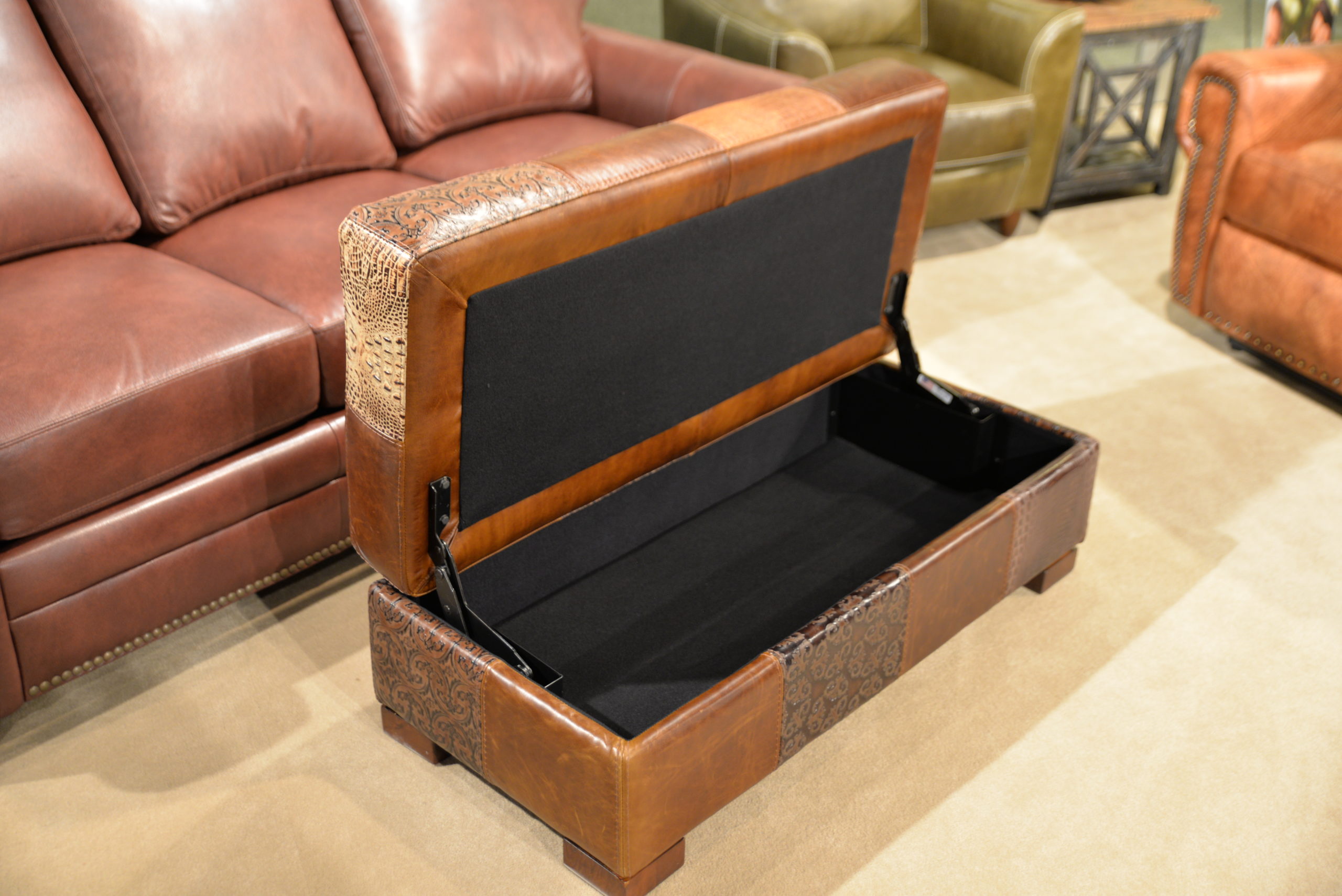 - Leather or Fabric Covers: 100% Top Grain Leather no bonded leathers, split hides or vinyl ever. Over 200 Leathers of 30 types, including designer patterns. Over 100 luxury fabrics options, including performance fabrics two-tone leather options and fabric/leather combinations.